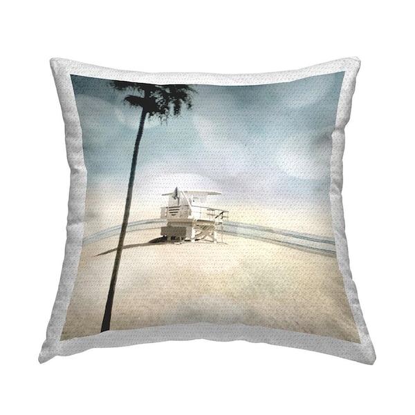 Peaceful Beach Shore Waterfront Blue Square Outdoor Throw Pillow