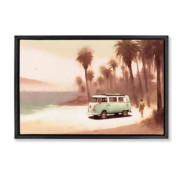 Peaceful Beach Travel Van by Noah Bay Black Floater Frame Coastal Graphic Art Print 17 in. x 25 in.