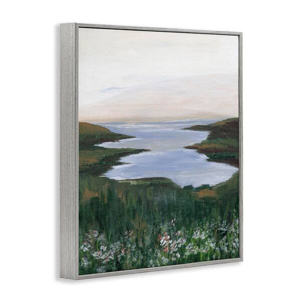 Peaceful Greenery by Lake by Nikita Jariwala Gray Framed Nature Giclee Art Print 14 in. x 11 in.