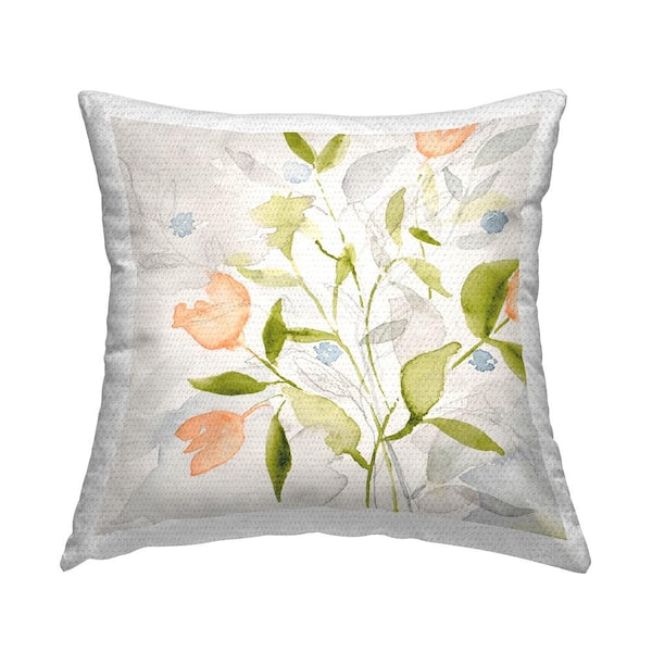 Peach Blooms Abstract Sprigs Multi-Color Square Outdoor Throw Pillow