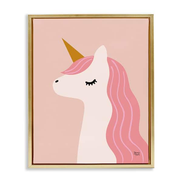 Peach Pastel Unicorn by Jessica Beck Gold Floater Frame Fantasy Graphic Art Print 21 in. x 17 in.