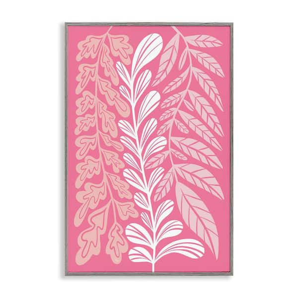 Peach Pink Long Plants by Martina Pavlova Gray Framed Nature Giclee Art Print 30 in. x 20 in.