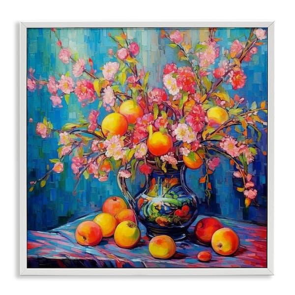 Peach and Florals Bouquet by LSR Design Studio White Framed Nature Giclee Art Print 24 in. x 24 in.