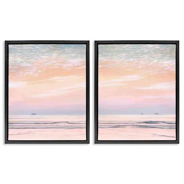 Peachy Coastal Sunrise by Grace Popp 2-Pieces Black Floater Frame Coastal Graphic Art Print 31 in. x 25 in.
