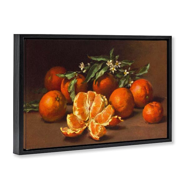 Peeled Oranges Still Life by Tina Higgins Designs, Inc. Black Floater Frame Food Graphic Art Print 17 in. x 25 in.
