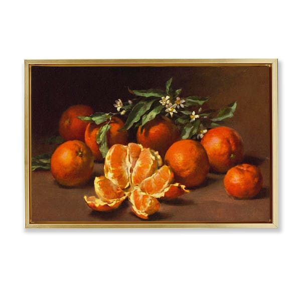 Peeled Oranges Still Life by Tina Higgins Designs, Inc. Gold Floater Frame Food Graphic Art Print 17 in. x 25 in.
