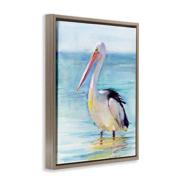 Pelican Wading in Sea by John Keeling Brown Floater Frame Coastal Graphic Art Print 31 in. x 25 in.
