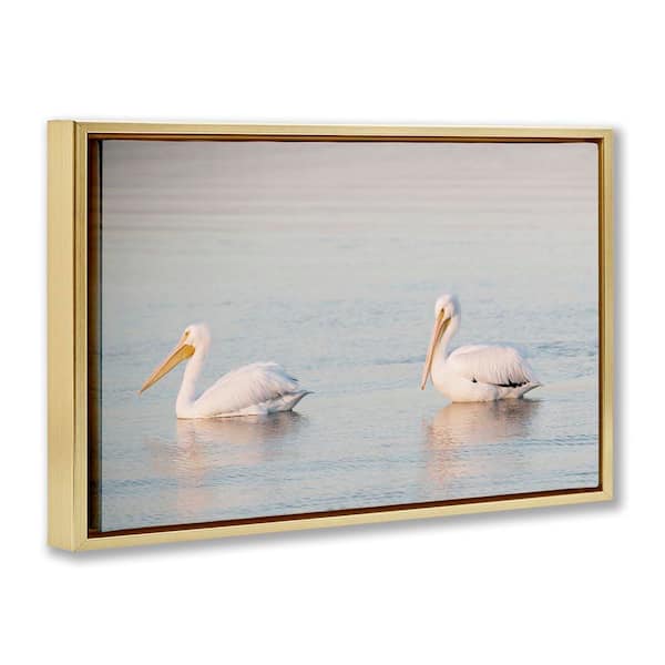 Pelicans on Calm Waters by Danita Delimont Gold Floater Frame Animal Graphic Art Print 17 in. x 25 in.