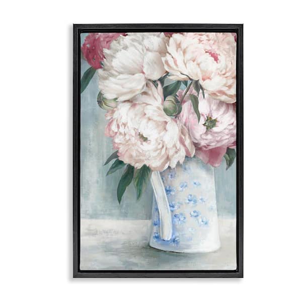 Peony Blossom Vase by Alex Black Black Floater Frame Nature Graphic Art Print 25 in. x 17 in.