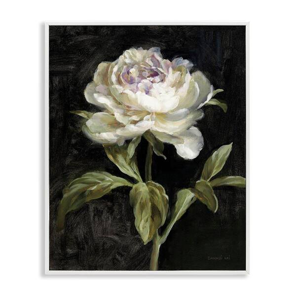 Peony on Black by Danhui Nai White Framed Nature Giclee Art Print 14 in. x 11 in.