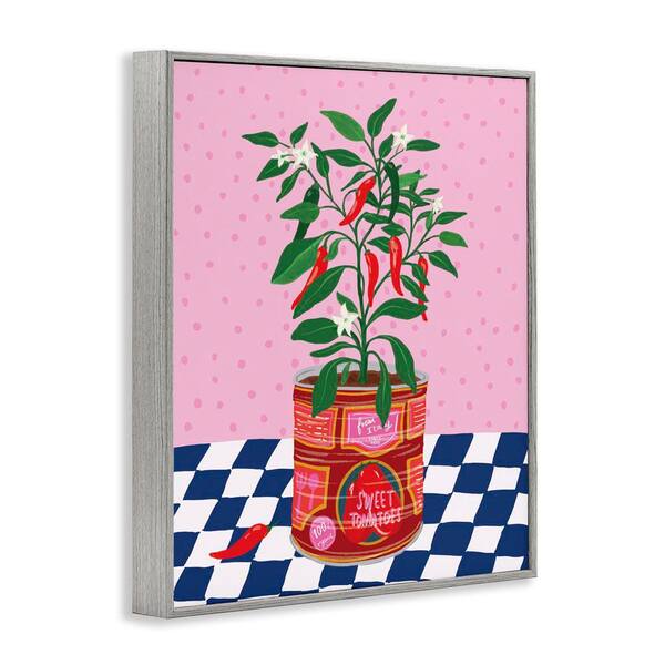 Pepper Plant in Tin by Be Ni La Gray Framed Food Giclee Art Print 20 in. x 16 in.