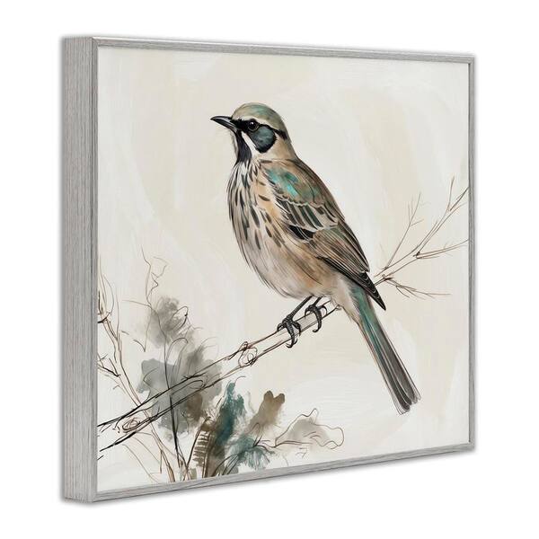 Perched Bird Illustration by LSR Creative Studio Gray Framed Animal Giclee Art Print 11 in. x 14 in.