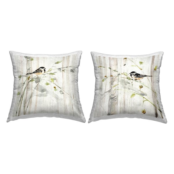 Perched Magpies Country Botanicals Beige Square Outdoor Throw Pillow 2-Pack