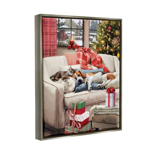 Pets on Holiday Couch by Jason Kirk 1 Piece Floater Frame Graphic Print Animal Poster Art Print 21 in. x 17 in.