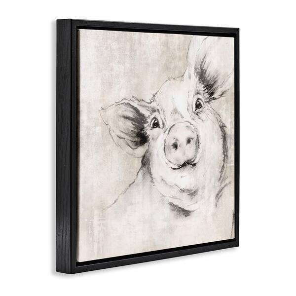 Pig Sketch Impression by Eli Jones Black Floater Frame Animal Graphic Art Print 25 in. x 25 in.