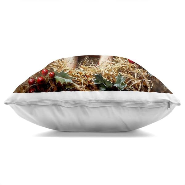 Pig with Holiday Garlands Brown Abstract Polyester 18 in. x 18 in. Throw Pillow