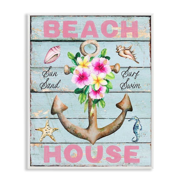 Pink Beach House Rustic by Creatif Belle White Framed Coastal Giclee Art Print 30 in. x 24 in.