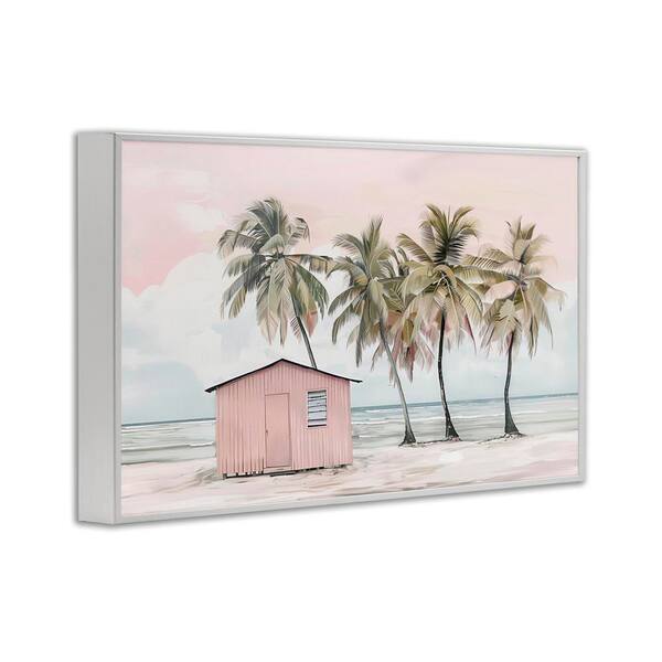 Pink Beach Hut and Palms by Arlington Prints White Framed Coastal Giclee Art Print 16 in. x 24 in.