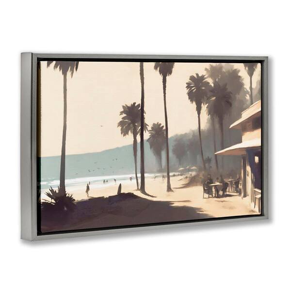 Pink Canopy Beach Scene by Noah Bay Gray Floater Frame Nature Graphic Art Print 17 in. x 25 in.