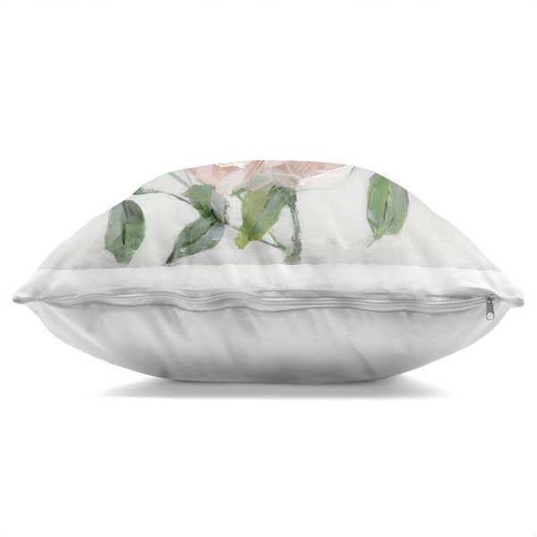 Pink Carnation Blossom Green Abstract Polyester 18 in. x 18 in. Throw Pillow