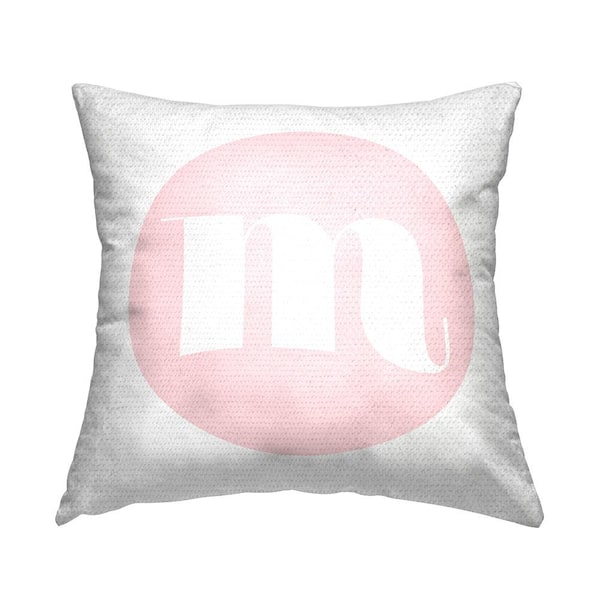 Pink Circle Letter M Square Outdoor Throw Pillow