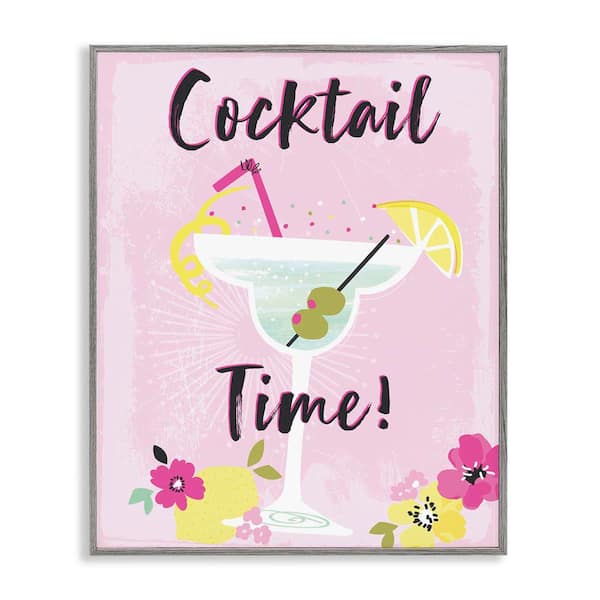 Pink Cocktail Time by Angela Nickeas Gray Framed Food Giclee Art Print 20 in. x 16 in.