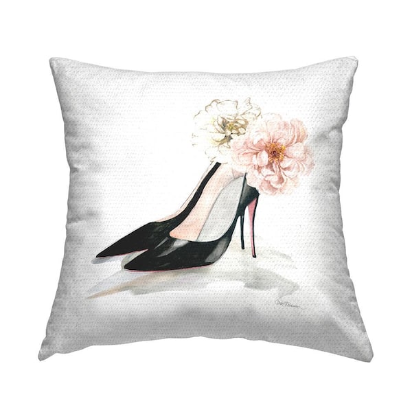 Pink Floral Black Heels Chic Fashion Shoes Pink Square Outdoor Throw Pillow