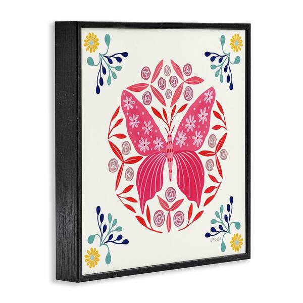 Pink Folk Butterfly by Yvette St. Amant Black Framed Animal Giclee Art Print 24 in. x 24 in.