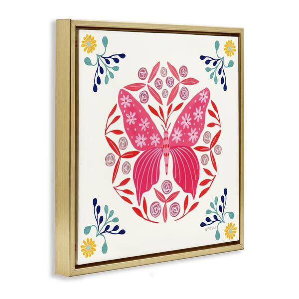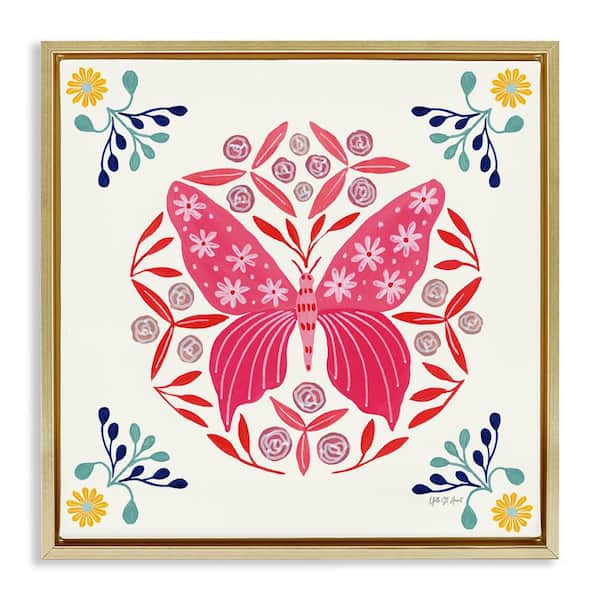 Pink Folk Butterfly by Yvette St. Amant Gold Floater Frame Animal Graphic Art Print 25 in. x 25 in.