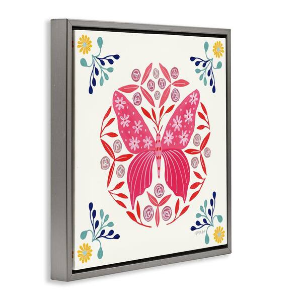 Pink Folk Butterfly by Yvette St. Amant Gray Floater Frame Animal Graphic Art Print 25 in. x 25 in.