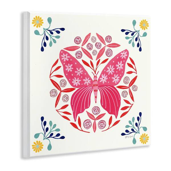 Pink Folk Butterfly by Yvette St. Amant Unframed Animal Graphic Art Print 12 in. x 12 in.