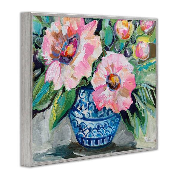 Pink Gerber Daisy Bouquet by Jeanette Vertentes Gray Framed Nature Giclee Art Print 16 in. x 20 in.