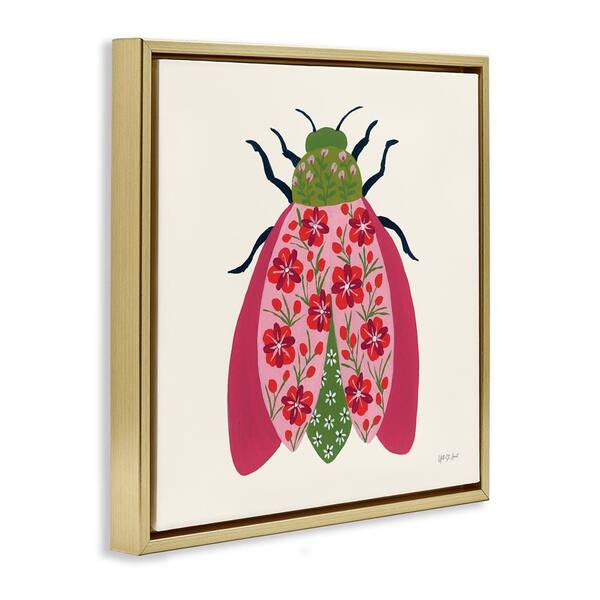 Pink & Green Blooming Beetle by Yvette St. Amant Gold Floater Frame Animal Graphic Art Print 25 in. x 25 in.