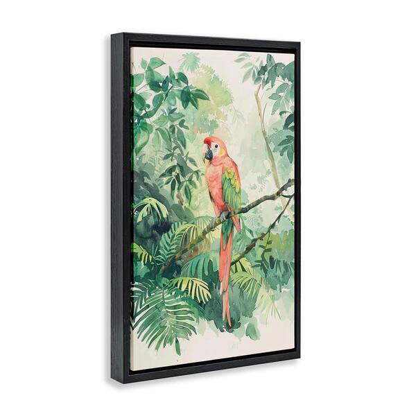 Pink Parrot in Jungle by LSR Design Studio Black Floater Frame Animal Graphic Art Print 31 in. x 21 in.