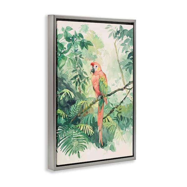 Pink Parrot in Jungle by LSR Design Studio Gray Floater Frame Animal Graphic Art Print 25 in. x 17 in.