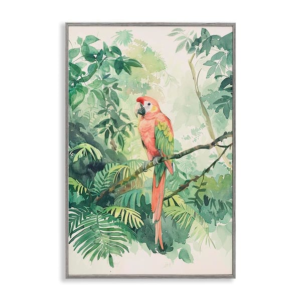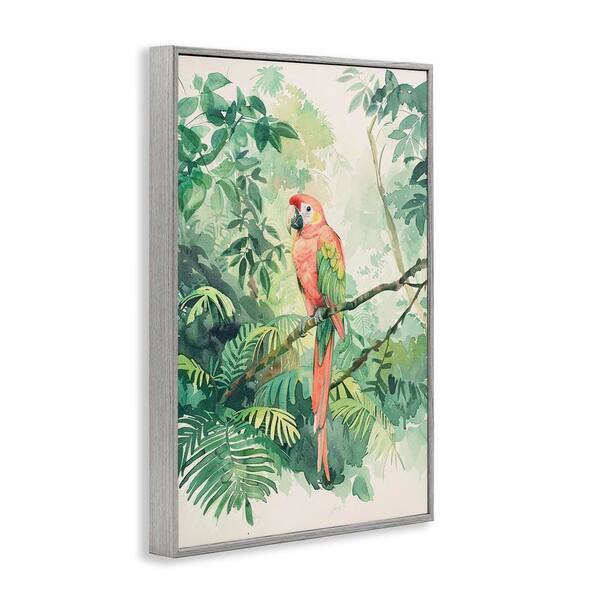 Pink Parrot in Jungle by LSR Design Studio Gray Framed Animal Giclee Art Print 18 in. x 12 in.