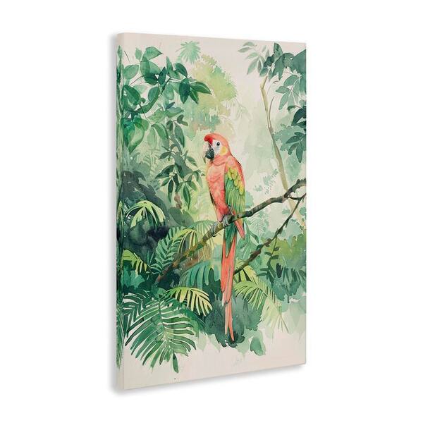 Pink Parrot in Jungle by LSR Design Studio Unframed Animal Graphic Art Print 30 in. x 20 in.