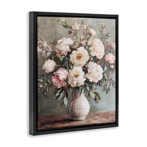 Pink Peonies Ornate Vase by Petal Prints Design Black Floater Frame Nature Graphic Art Print 21 in. x 17 in.