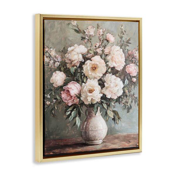 Pink Peonies Ornate Vase by Petal Prints Design Gold Floater Frame Nature Graphic Art Print 31 in. x 25 in.