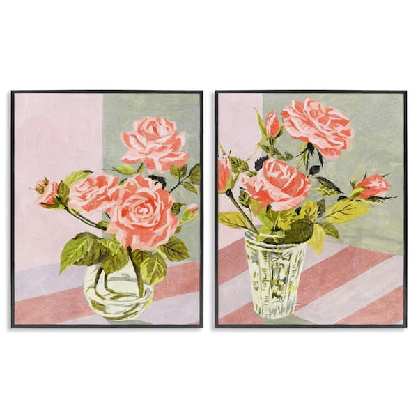 Pink Rose Bouquets in Glass by Melissa Wang 2 Pieces Black Framed Nature Giclee Art Print 30 in. x 24 in.