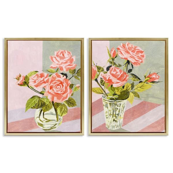 Pink Rose Bouquets in Glass by Melissa Wang 2 Pieces Gold Floater Frame Nature Graphic Art Print 31 in. x 25 in.