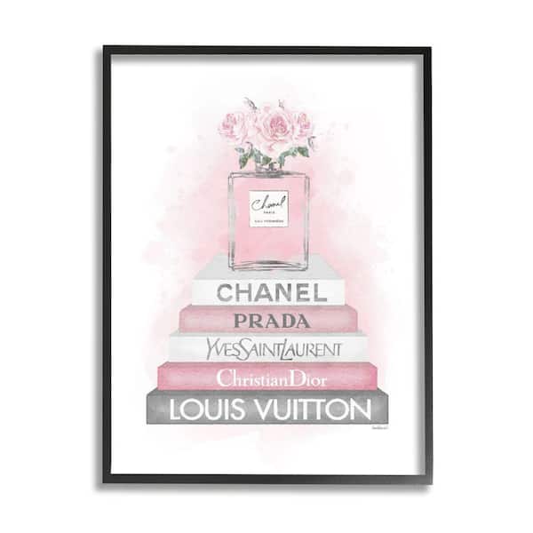 "Pink Roses Perfume Bottle Glam Fashion Bookstack" by Amanda Greenwood Framed Nature Wall Art Print 24 in. x 30 in.