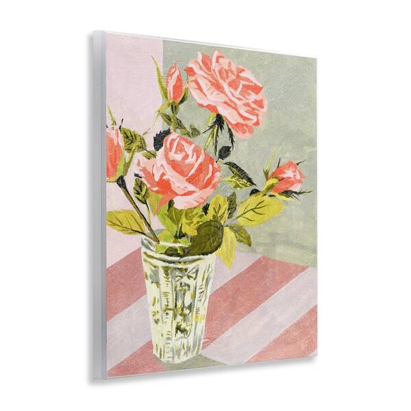 Pink Roses on Stripes by Melissa Wang Unframed Nature Graphic Art Print 14 in. x 11 in.