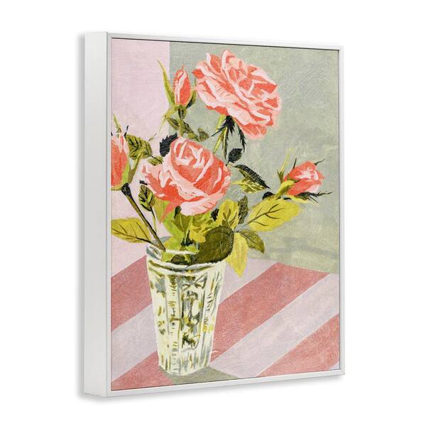Pink Roses on Stripes by Melissa Wang White Framed Nature Giclee Art Print 30 in. x 24 in.