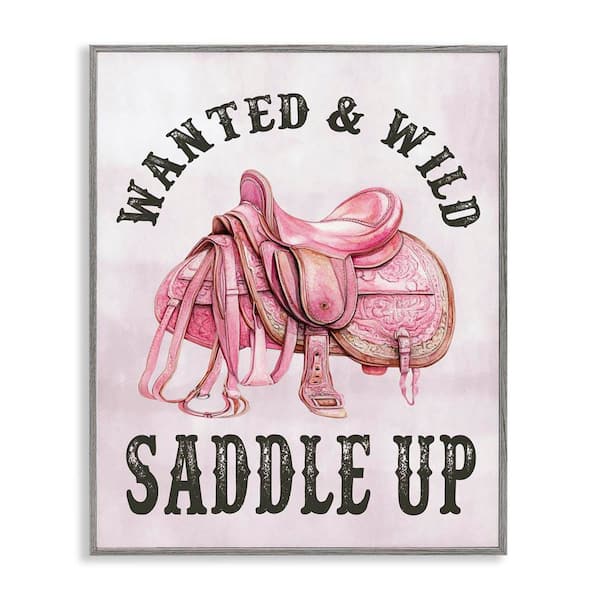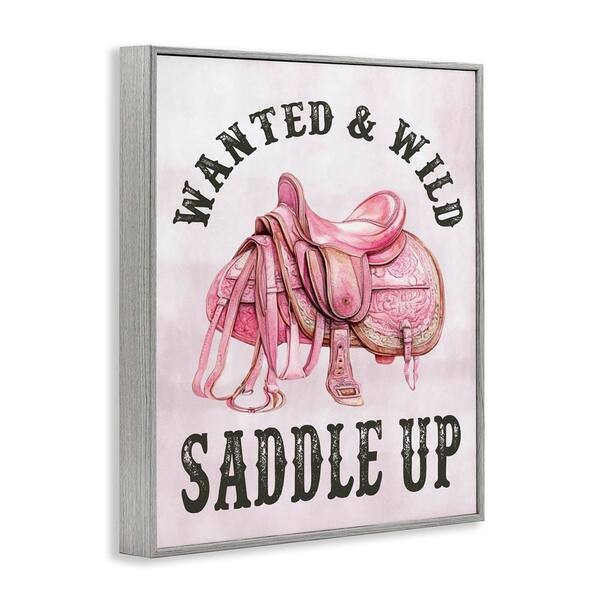 Pink Saddle Up Cowgirl by Lettered and Lined Gray Framed Typography Giclee Art Print 14 in. x 11 in.
