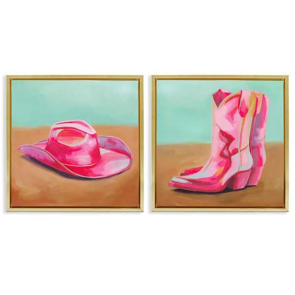 Pink Theme Cowgirl Fashion by Grace Popp 2 Pieces Gold Floater Frame Abstract Graphic Art Print 18 in. x 18 in.