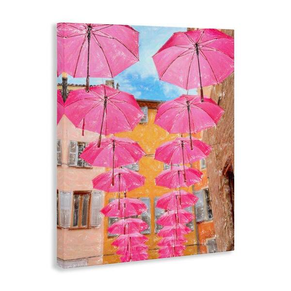 Pink Umbrellas in Town by Graffi tee Studios Unframed Architecture Graphic Art Print 20 in. x 16 in.