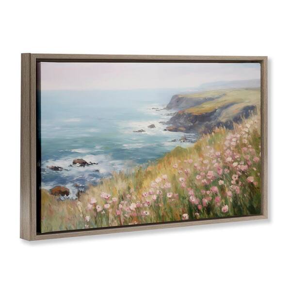 Pink Wildflower View by LSR Design Studio Brown Floater Frame Nature Graphic Art Print 17 in. x 25 in.
