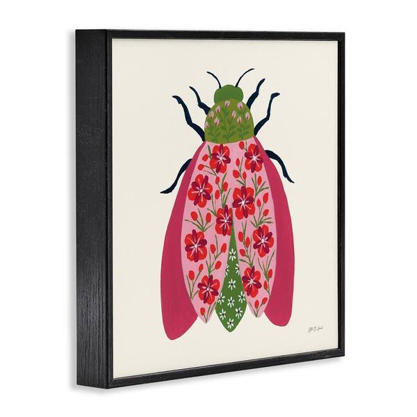 Pink and Green Blooming Beetle by Yvette St Amant Black Framed Animal Giclee Art Print 12 in. x 12 in.