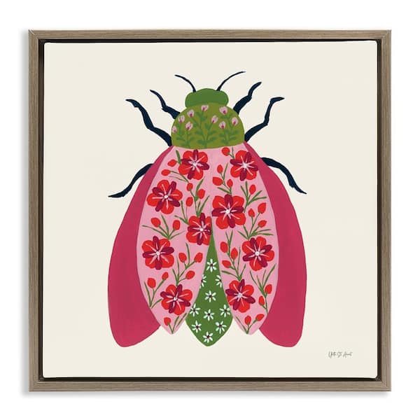 Pink and Green Blooming Beetle by Yvette St. Amant Brown Floater Frame Animal Graphic Art Print 25 in. x 25 in.